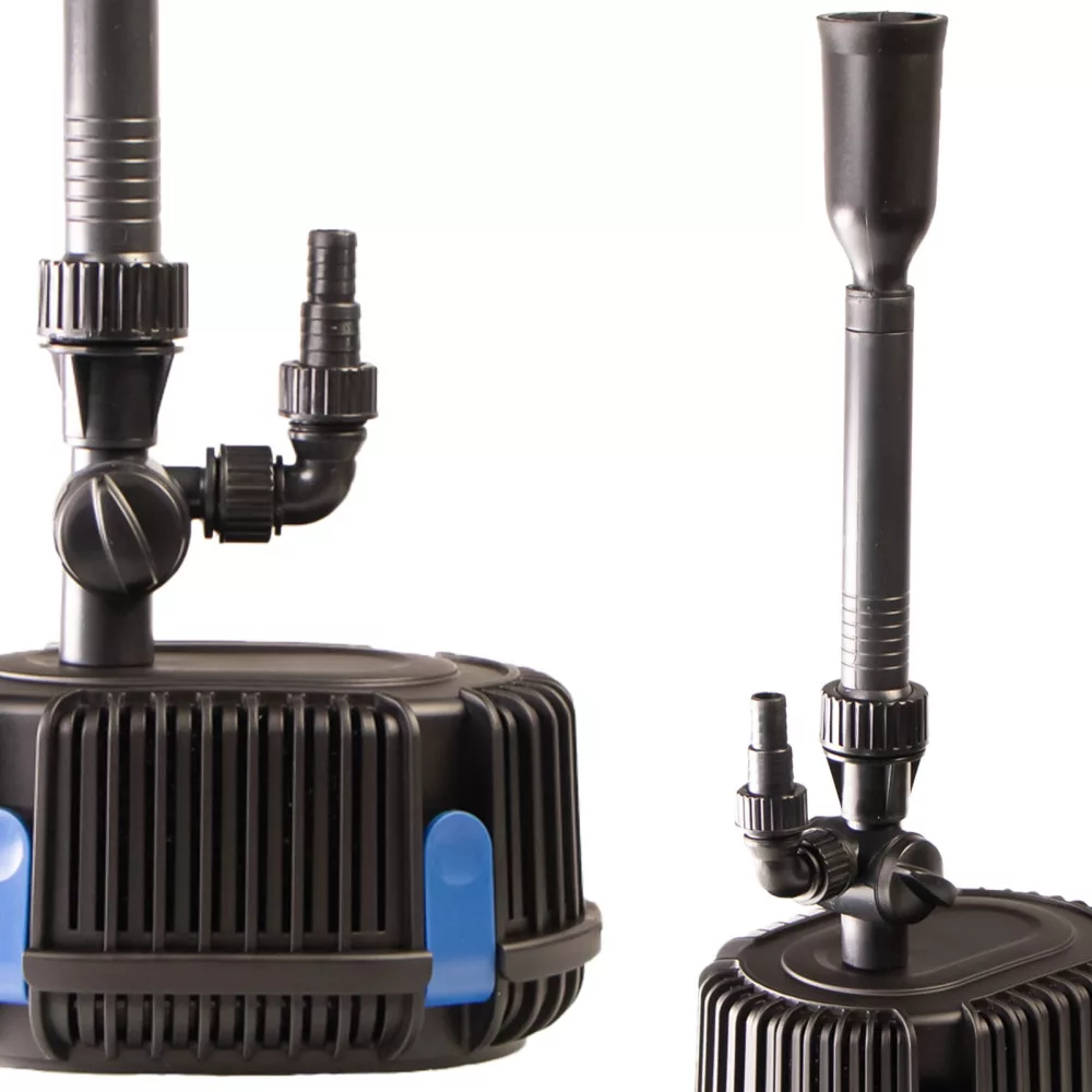 ➡️ Fontanna i trójnik na wąż: Dopełnieniem doskonałego zestawu filtracyjnego jest wielofunkcyjna fontanna. Posiada ona trzy różne dysze wylotowe o unikalnych możliwościach umożliwiających stworzenie różnorodnych kształtów fontanny wodnej. Możesz skorzystać z trójnika, aby przekazać strumień wody np na fontannę i kaskadę wodną lub na tylko kaskadę. Trójnik posiada płynną podwójną regulację przepływu, aby użytkownik mógł sam ustalić ile wody trafi do wodospadu a ile do fontanny.