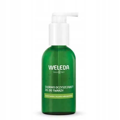 Głęboko oczyszczający żel do twarzy Weleda jest zamknięty w eleganckiej butelce z zielonego szkła, nadającej się do recyklingu, z niezawierającą metalu pompką. Kosmetyk delikatnie usuwa nadmiar sebum, zanieczyszczenia i makijaż oczu, pozostawia skórę miękką, elastyczną i wolną od uczucia ściągnięcia i lepkich pozostałości zanieczyszczeń. Wspomaga naturalny blask skóry. Idealny dla skóry normalnej i mieszanej.
