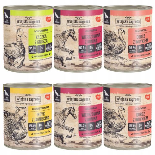 WIEJSKA ZAGRODA Mix Smaków karma dla psa mokra puszka 6 x 800