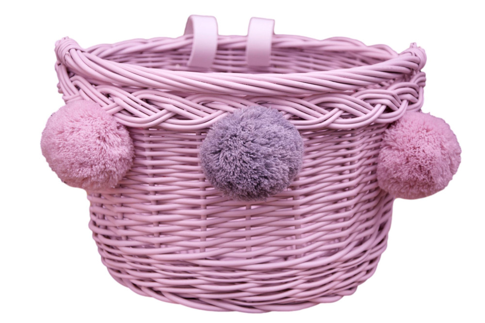 PIĘKNY MINI KOSZYCZEK NA ROWER DZIECIĘCY LUB HULAJNOGĘ w kolorze pudrowego różu – kosz wiklinowy doskonale nadaje się na wycieczki rowerowe dla najmłodszych. Mini koszyczek dopasowany do małych rowerków czy hulajnóg, idealny do przewożenia nieodłącznych maskotek.