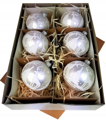 Podana cena jest za komplet sześciu sztuk bombek o wymiarach 8 cm.