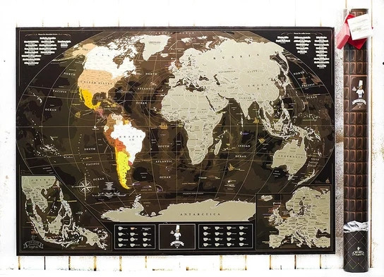 Mapa Zdrapka jest świetnym prezentem dla każdego amatora podróży - większych i mniejszych. Zdrapywanie kolejnych regionów i krajów na mapie świata po kolejnych podróżach będzie wielką frajdą dla każdego.