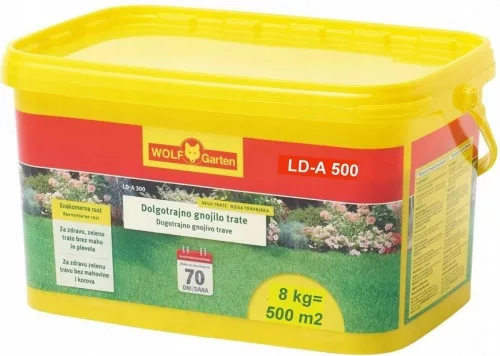 Nawóz długoterminowy Wolf-Garten LD-A 500 przeznaczony jest do odżywiania trawnika wiosną i wczesnym latem. Wysoka zawartość azotu (28%) zapewnia intensywny wzrost i nasycony zielony kolor trawnika już od pierwszych tygodni sezonu wegetacyjnego. Dzięki specjalnej formule składniki odżywcze są uwalniane stopniowo, zapewniając stałe odżywianie przez 8 do 10 tygodni.