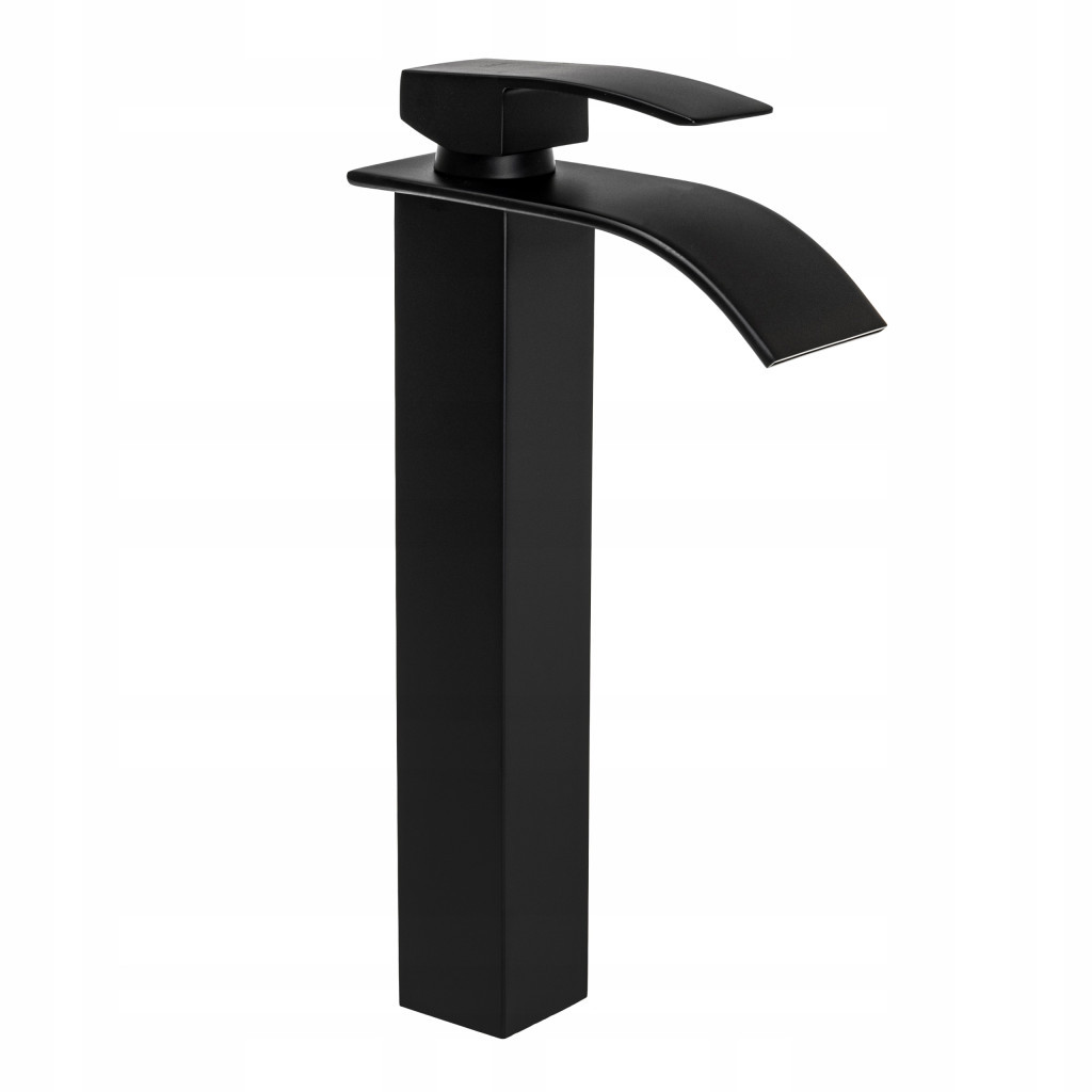 Mechaniczna wysoka bateria umywalkowa jednouchwytowa. Wylewka stała z efektem wodospadu. Korpus baterii wykonano z mosiądzu.