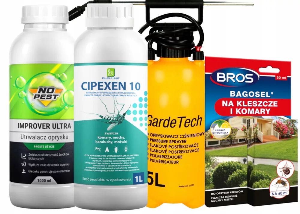 Cipexen 10 1L + Bros Bagosel 30 ml + Utrwalacz NO PEST 1L - super silny oprysk na komary, kleszcze, muchy, mrówki