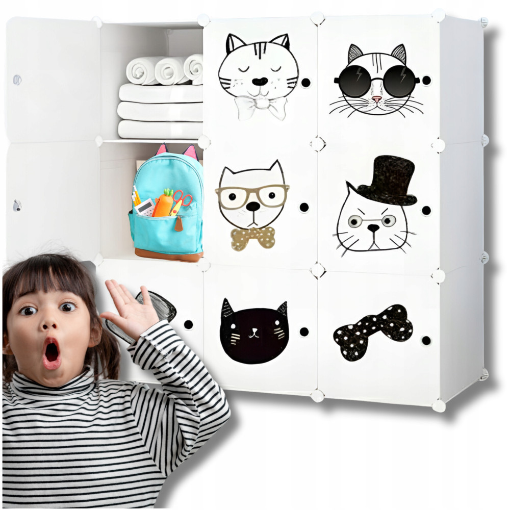 Modułowa szafka dla dzieci z motywem bajkowym to świetne uzupełnienie każdego dziecięcego pokoju czy sypialni. Składa się ona z 9 modułów, z których każdy posiada drzwiczki z bajkowym nadrukiem.