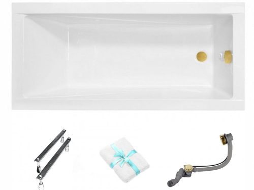 Rechteckige Badewanne Modern130x70 Besco ohne Siphon, goldener Rahmen, Beine, Handtuch