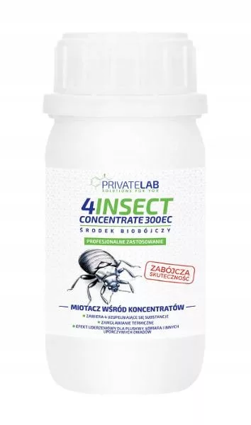 4insect Concentrate 300 EC jest to preparat owadobójczy w formie płynnego koncentratu do sporządzania emulsji wodnej, przeznaczony likwidacji gniazd os i szerszeni oraz do zwalczania owadów latających i biegających. Do stosowania w pomieszczeniach i na zewnątrz na terenach utwardzonych.