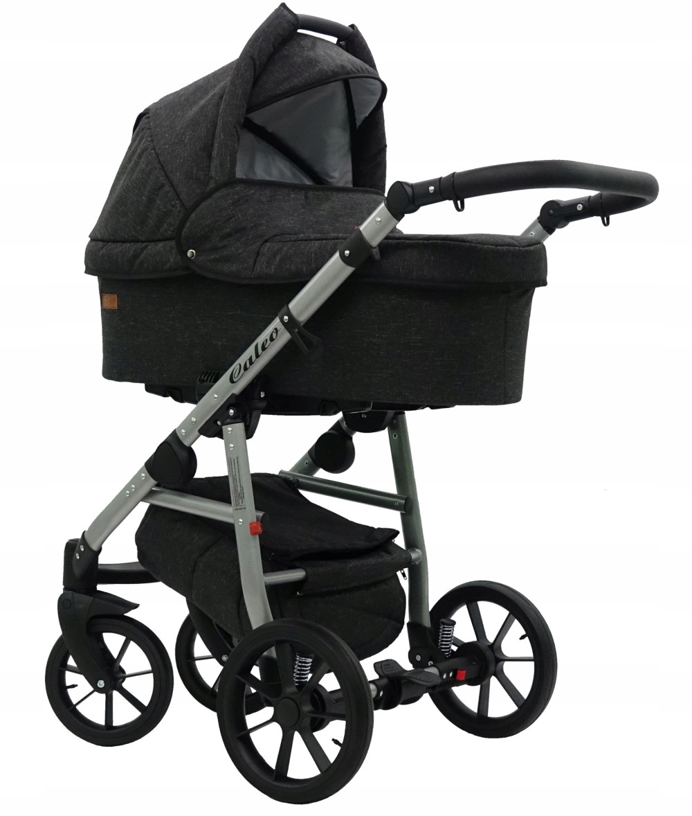 CALEO alu to premierowy model wózka głęboko spacerowego na aluminiowej ramie z innowacyjnym systemem składania.Quero alu ma prowadnicę obszytą eco-skórą,pojemny kosz na zakupy i bardzo lekką plastikową spacerówkę,Posiada także regulowane oparcie spacerówki i oparcie gondoli regulowane .Ponadto regulowana jest wysokość prowadnicy i podnóżka.Gondolę i spacerówkę można zamontować przodem lub tyłem do kierunku jazdy.Każdy z elementów posiada osobne przykrycie na nóżki