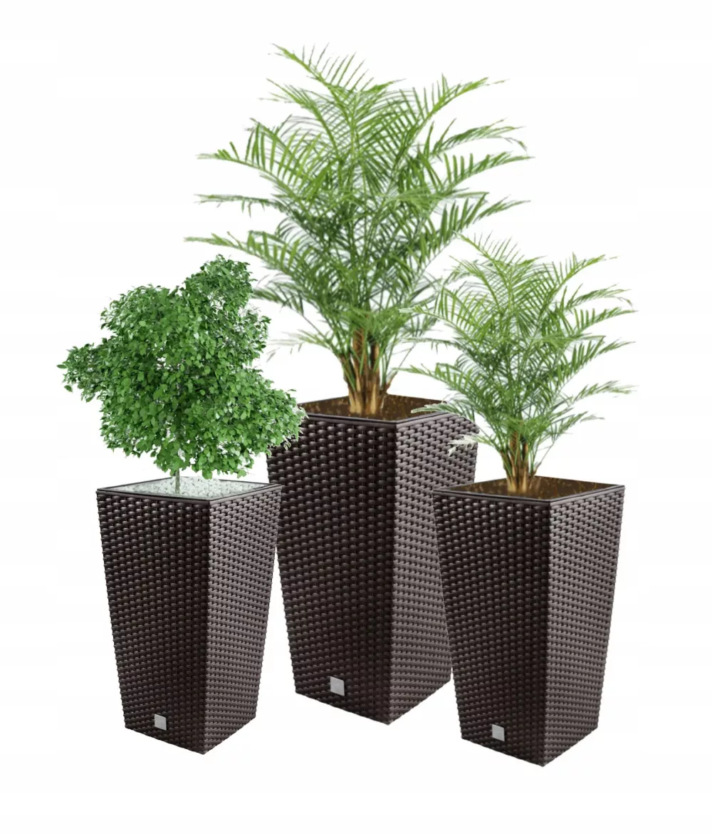 Donice ogrodowe linii Rato Square to kwadratowe donice, charakteryzujące się pięknym zdobieniem przypominającym swoją fakturą plecionkę z naturalnego rattanu. Wykonane zostały z wysokiej jakości tworzywa sztucznego odpornego na promieniowanie UV oraz warunki atmosferyczne. Zestaw donic tarasowych będzie idealnym dodatkiem na taras oraz dla aranżacji przestrzeni wokół domu. Charakter donicy godzi różne style, sprawdzi się zarówno w przestrzeni wykonanej w stylach nowoczesnych jak i klasycznych. W zestawie 3 donice różnych wymiarów, oraz 3 wkłady. Komplet donic o 3 różnych wymiarach sprawi, że będziesz mogła je dobrowolnie modyfikować, a każdy układ będzie dobrze wyglądać i nada nowego charakteru otoczeniu. Produkt polskiego producenta firmy Prosperplast.
