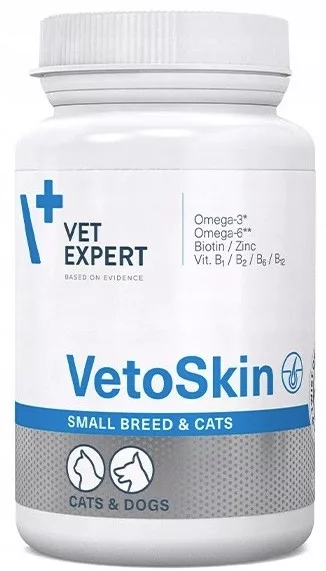 Suplement dla psów małych ras i kotów na sierść VET EXPERT VetoSkin 60 kaps
