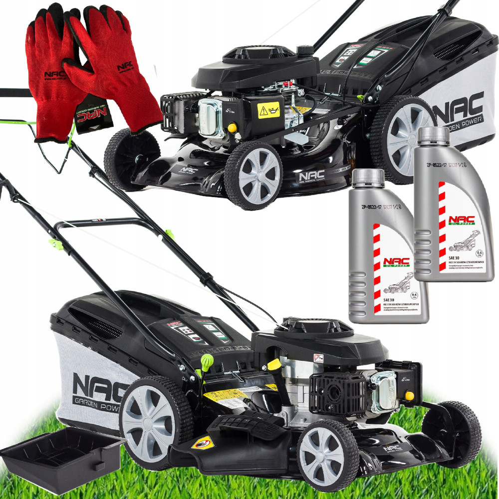 Benzin-Rasenmäher mit NAC-ANTRIEB 196cm3 51cm SCHLEIFEN 5in1 + Handschuhe 2x Öl