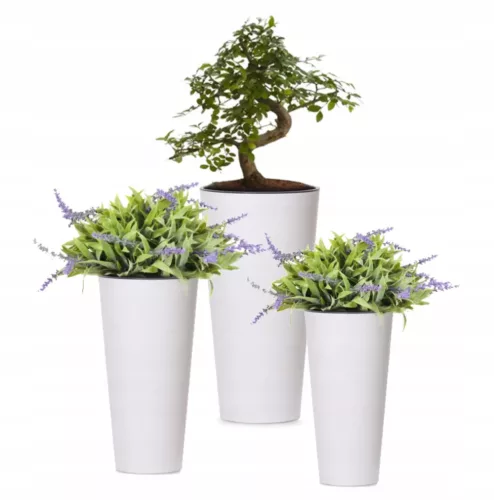 Donice Ogrodowe Zestaw Donic Tarasowych 3 szt. + Wkład Duże Białe Tubus Slim