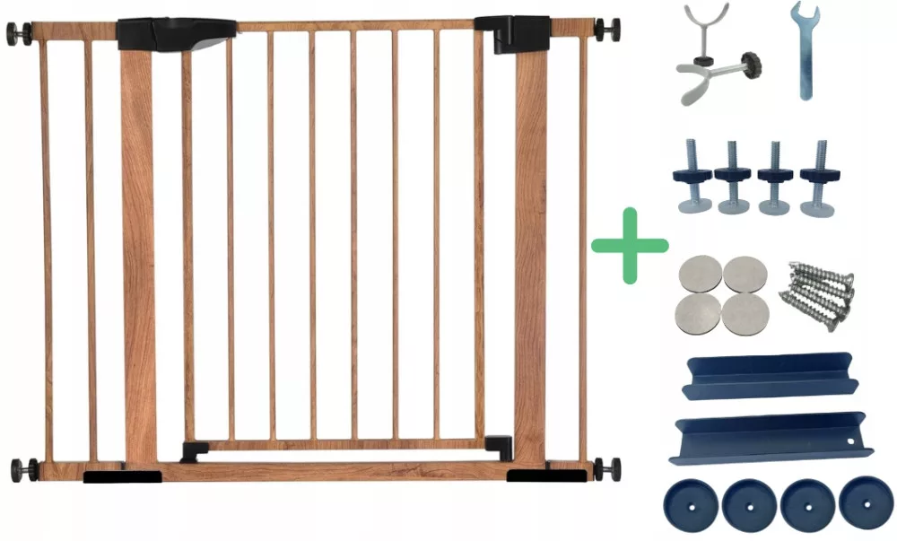 Prezentujemy Ci wygodną w montażu i obsłudze bramkę ochronną, która w skuteczny sposób podniesie bezpieczeństwo Twojego dziecka! Ta stalowa bramka w kolorze drewna nie tylko charakteryzuje się stabilną konstrukcją i nowoczesnym designem, ale także jest niezwykle wytrzymała. W porównaniu do tradycyjnych drewnianych bramek, ta opcja oferuje podwójny system zamykania z dwoma ryglami, zapewniając dodatkowe bezpieczeństwo. Bramka wyposażona jest również w inteligentny system samozamykania, co oznacza, że nie trzeba pamiętać każdorazowo o zamykaniu bramki, co jest niezwykle wygodne dla użytkowników.