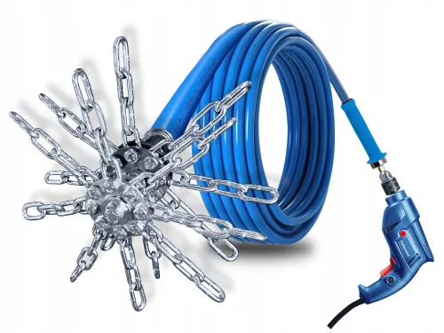 Turbospiner - Lanca do czyszczenia komina - Super Mocna obrotowa szczotka, wycior kominowy napędzany wiertarką lub wkrętarką - 8 metrów - GŁOWICA Z 16 ŁAŃCUCHAMI!!!