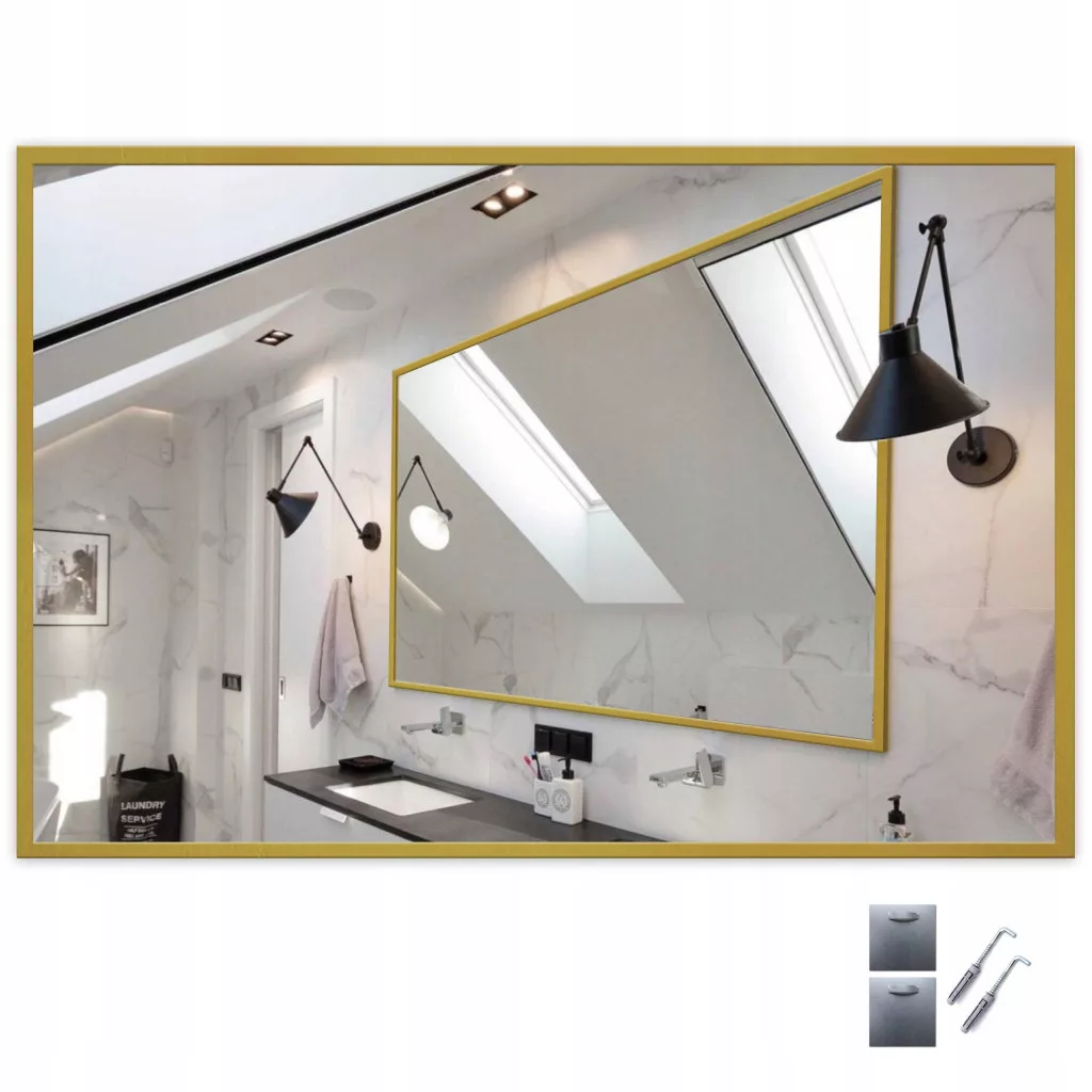 LUSTRO LED 120x80 cm BEZ PODŚWIETLENIA W ZŁOTEJ, ALUMINIOWEJ RAMIE WYSOKIEJ JAKOŚCI