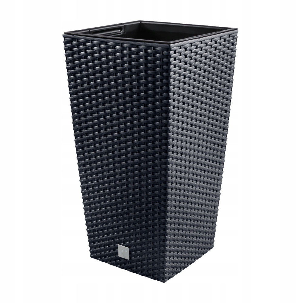 Wysoka doniczka Rato Square o fakturze wiernie imitującej plecionkę z naturalnego rattanu, w klasycznej, czystej formie, pozwala kreować piękne unikatowe wnętrza i bez ograniczeń aranżować przestrzeń wokół domu, godząc różne style i upodobania.